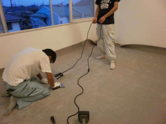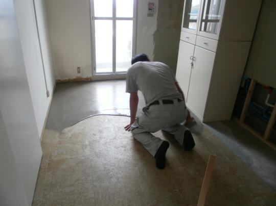 剥がし終えた床に下地を塗って、床面を整えます。 |