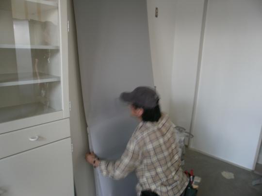 | ドアとドア枠に『ダイノックシート』を張っているところです。 『ダイノックシート』は裏が接着面になっているのですが 木目調からメタル調まで色も柄も豊富にあります。 仕上がりはとてもきれいで、ドアを全くあたらしいものに換えたようです。 今回はお施主様のお好みでグレーの『ダイノックシート』を張ったのですが きれいな仕上がりに、とても喜んでいらっしゃいました。 |