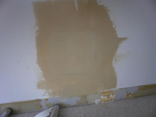 | 壁と天井のクロス張替えの様子です。 クロスを剥がしているところです。 |