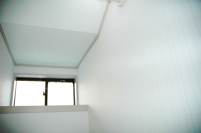 | 天井と壁紙を張り替えました。窓から射す光で白がより引き立ちます。 | ドアも同じクロスで張替えました。 |