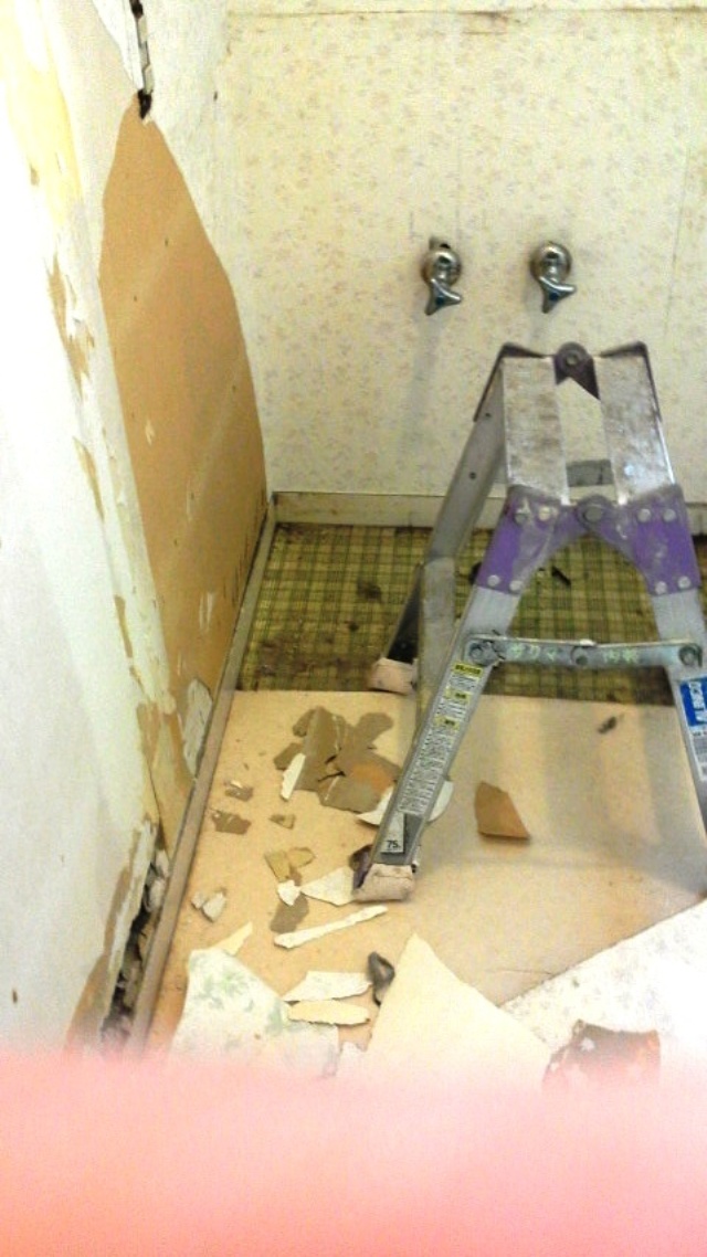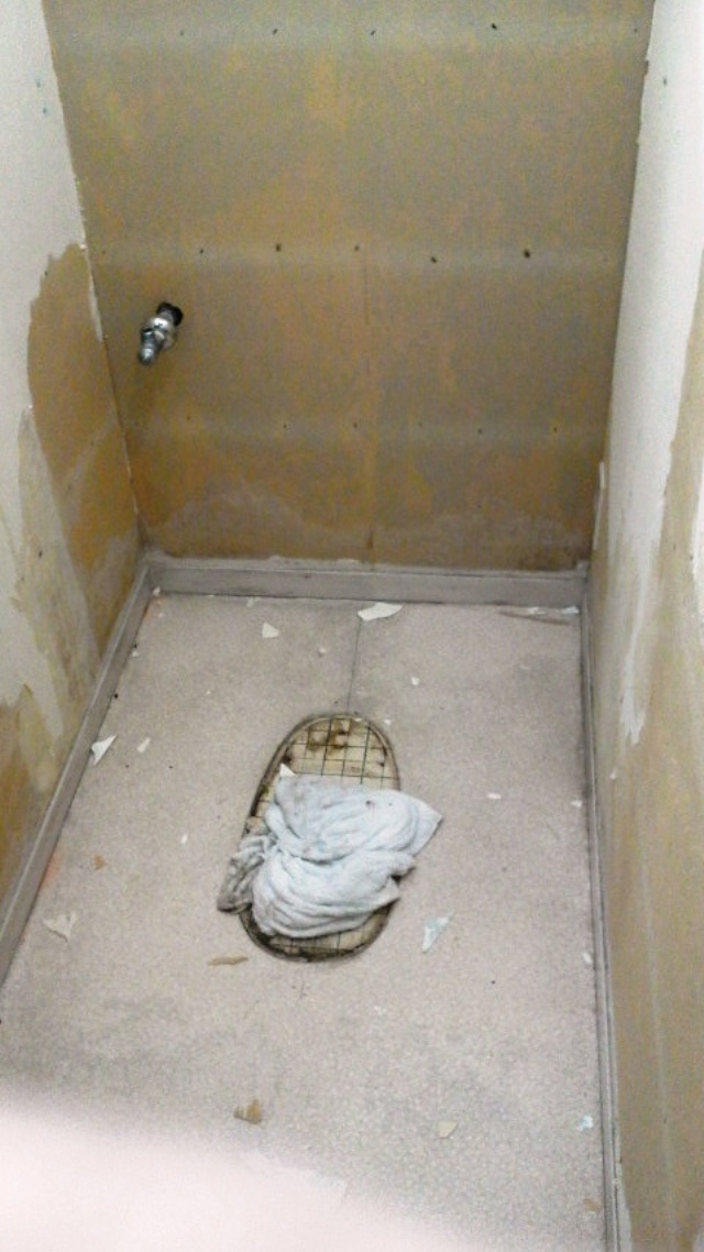 床も壁もかなり老朽しています。 補強して張り替えていきます。 |