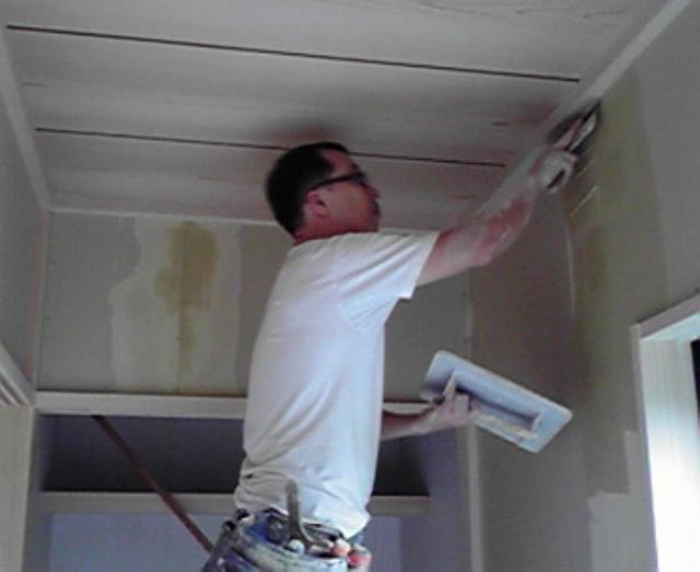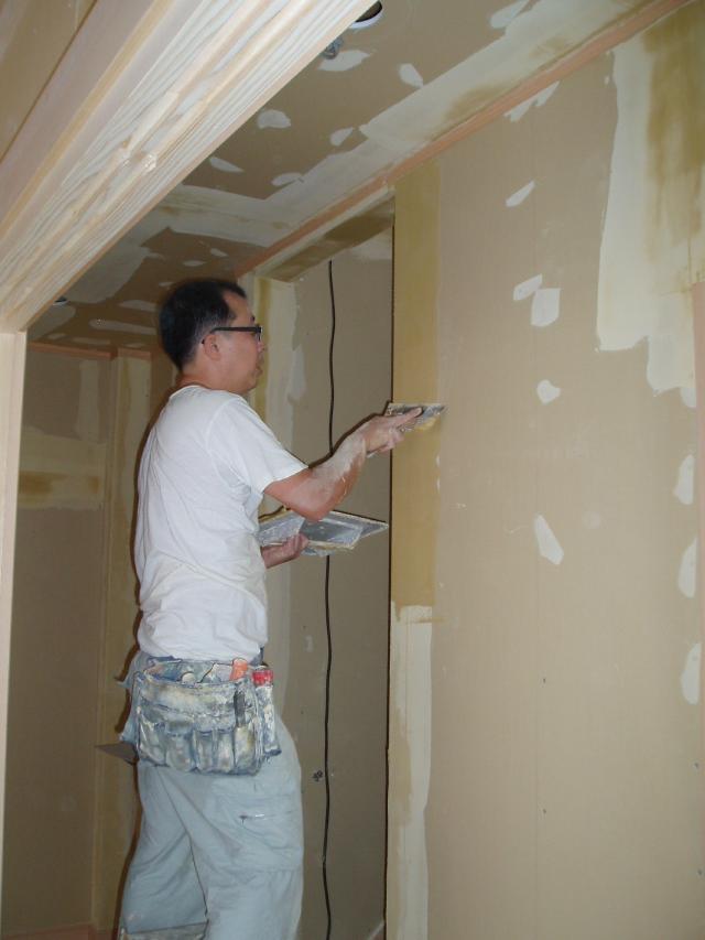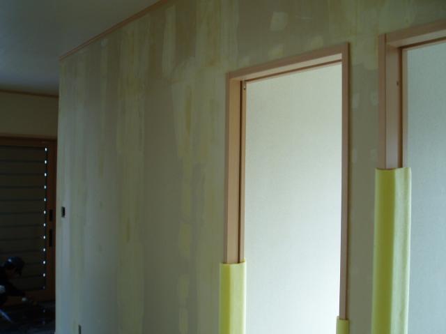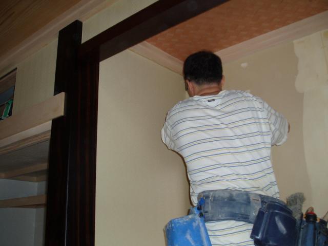 | クロスがきれいに張れるように 下地のパテを塗って、壁面の凹凸をなくします。 |