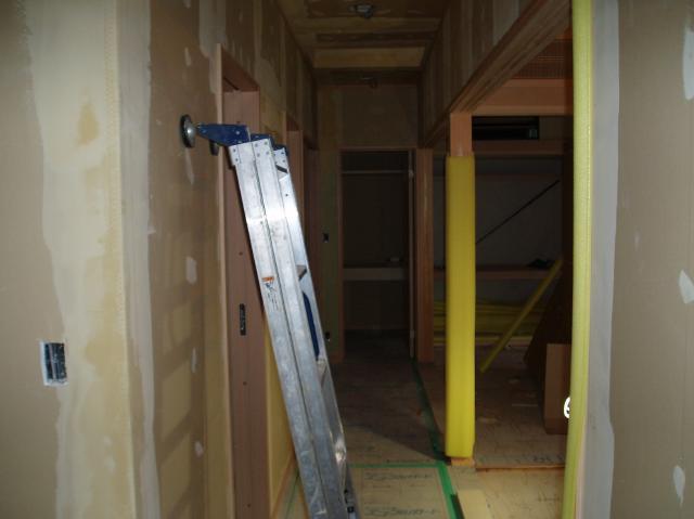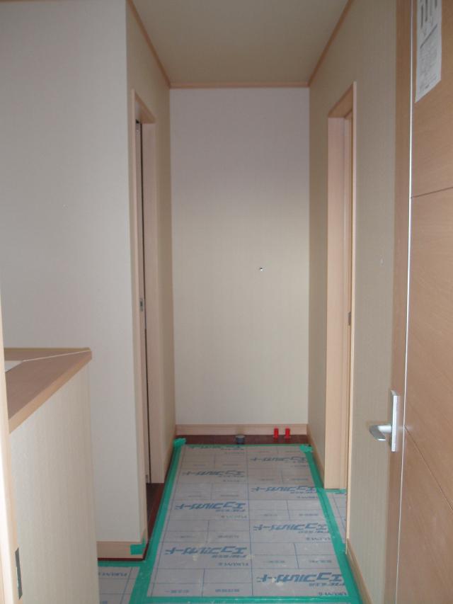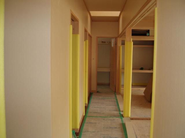 | 2Fの廊下です。 正面に洗面台が設置されるのが楽しみですね。 |