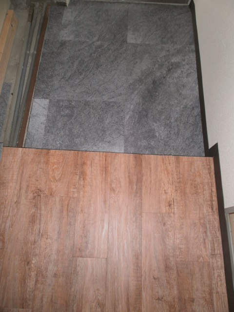 | 玄関:使用するのはメーカー東りの プリントタイル『ロイヤルストーン』です。 廊下に使用したロイヤルウッドと同様 こちらもエコマークを取得しています。 |