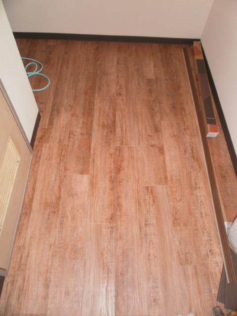 | プリントタイルを貼る前の廊下です。 | 廊下:完成しました! |