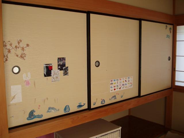 | リフォーム前は吊り襖と戸襖の和室側は、襖紙が張ってあり、一般的な和室の雰囲気でした。 | |
