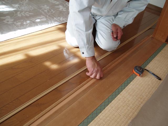 | こちらは戸襖の方ですが、既存の敷居滑りを取り替えているところです。 |