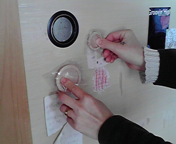 | 新しい敷居滑りは両面テープでつけます。 |