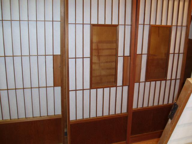 | 古い障子紙をはがすため、はけで湿らせました。 | デザインが素敵な障子ですよね。 | ||||||||||||||