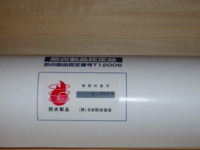 | 防炎製品ラベルが包装紙に貼り付けてあります。 30秒間火を付けた燃焼実験では、 通常の障子紙が半分以上燃えているのに対し、 ツインガードは一部分が焦げただけでした。 |