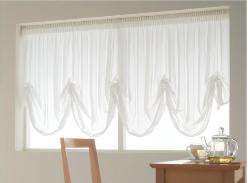 | ボウウィンドウを、やさしい素材のバルーンカーテンで演出。 よりゴージャス感が増しますね! |